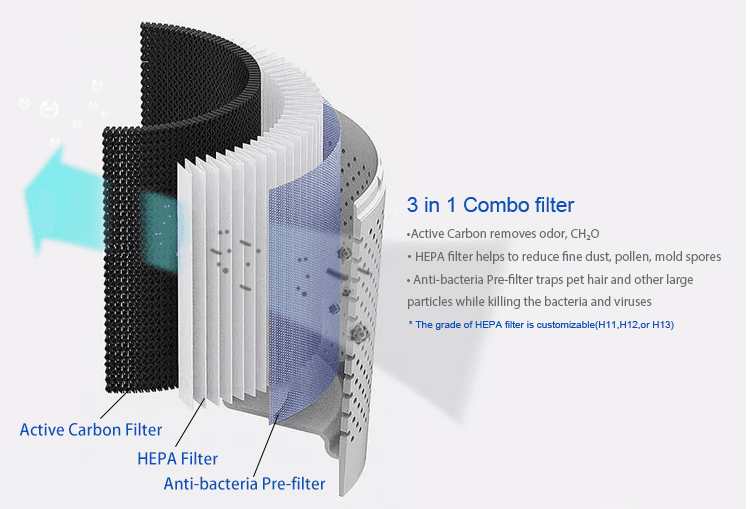 · HEPA filter with carbon (True HEPA H13 for option)